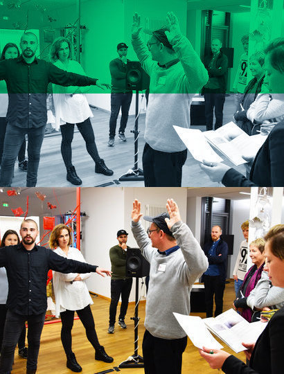 Die pandemiebedingte Isolation aller Beteiligten ließ immer wieder eine große Sehnsucht der Studierenden nach einer Zusammenarbeit vor Ort im Studio oder am Set spürbar werden. Die Leiter*innen der Lehrveranstaltung, Marlene Breuer, Robin Wieman und ich, Sabine Breitsameter, vermochten gemeinsam mit den Studierenden pandemie-konforme Regelungen zu finden, die eine gemeinsame Arbeit vor Ort zumindest punktuell möglich machten.